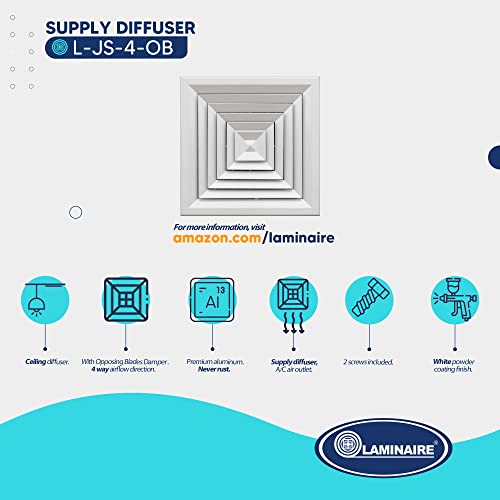 - Injection or supply of air is done on 4 ways. With Opposing Blades Damper -Full control Vertical/Horizontal Airflow Direction.The adjustable parallel blades allow to graduate the air diffusion. It is a versatil air supplier diffuser with easy unrestricted Air Flow.