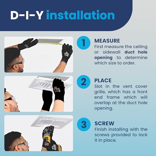 - MEASURE FIRST FOR FAST INSTALLATION: Before purchasing, measure your ceiling or wall opening to fit our 10x6 wall vent cover. Our vent grill cover is quick to install with the included galvanized steel screws for a quick setup in your HVAC system.